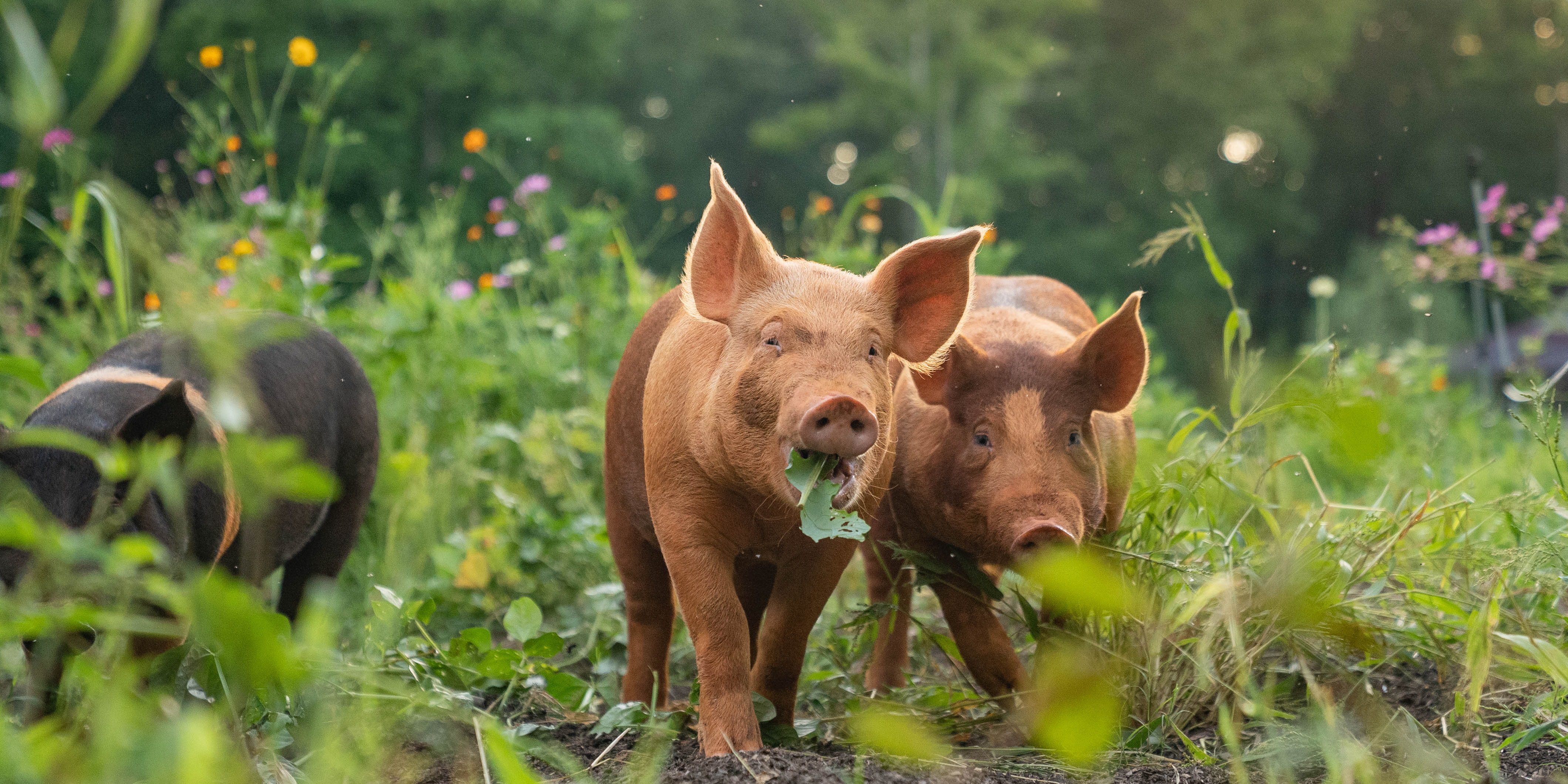 We feed a non-GMO, corn-free, soy-free feed to supplement their natural forage — because what goes into your animal matters just as much as how it's raised. Our pigs never receive antibiotics, added hormones, or mRNA vaccines. Ever. No exceptions.